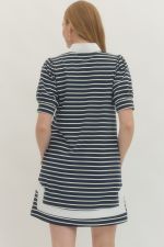 Navy SHORT SLEEVE RIB COLLAR dress